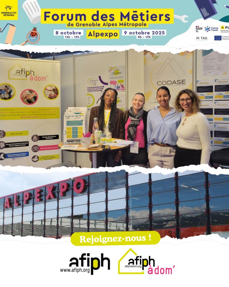 Les équipes Afiph et Afiph à dom’ étaient présentes les 8 et 9 octobre 2025 pour rencontrer, échanger et partager avec les nombreux visiteurs venus découvrir les métiers de l’accompagnement et du service à la personne 💬✨